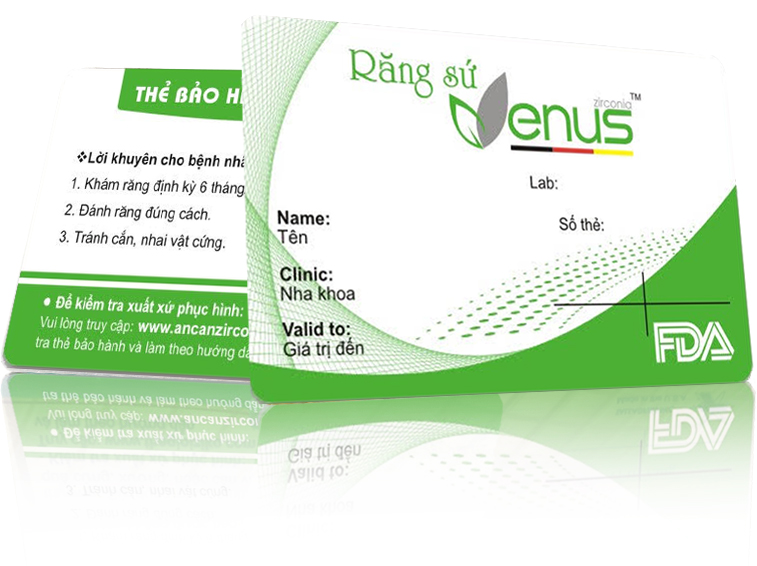 Khi quý bác sĩ, nha sĩ, phòng khám nha khoa đặt hàng tại Lab nha khoa thì sẽ nhận được thẻ bảo hành sứ Venus như hình. Trong thẻ sẽ có cách hướng dẫn cụ thể để bệnh nhân có thể tra cứu thông tin bảo hành trên website: baohanhnhakhoa.com.